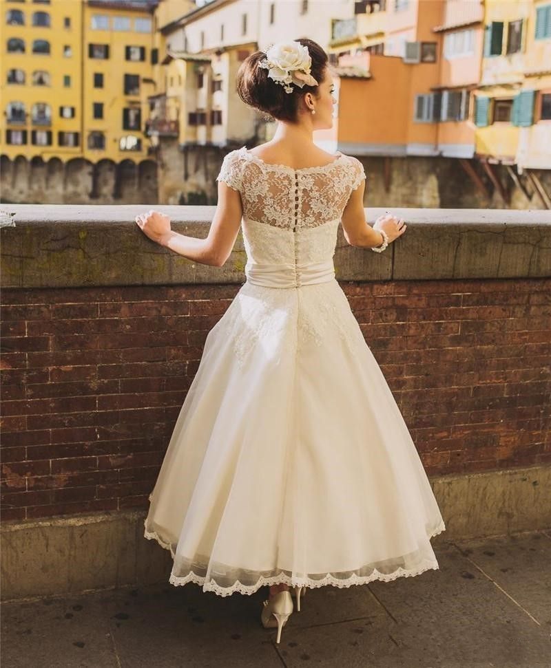 Discount Vintage Lace Plus Size Wedding Dresses 2017 A Line Tea