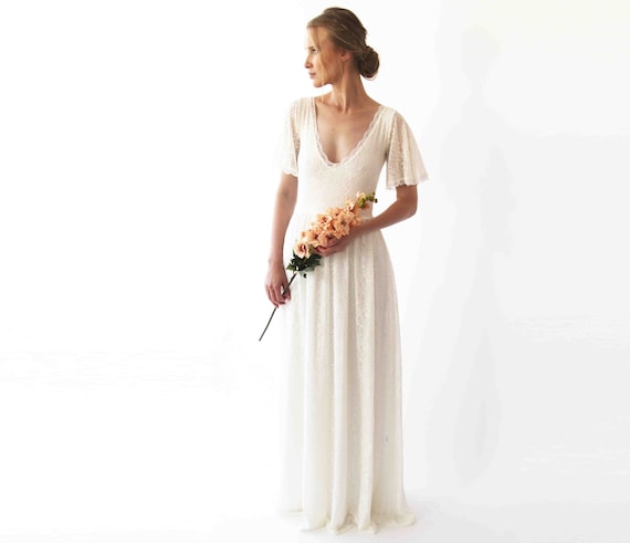 Cape Sleeves Lace Bohemian Wedding Dress Ivory Lace Color Etsy