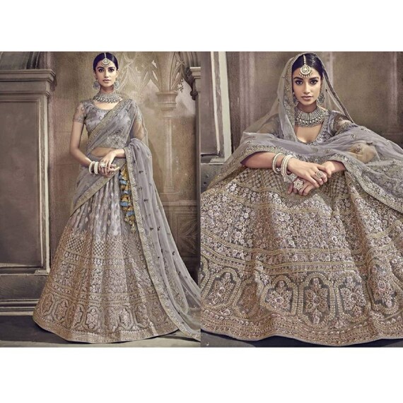 Grey Net Embroidered Bridal Lehenga Choli Lehenga Bridal Etsy