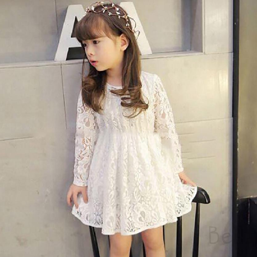Girl S Long Sleeve Lace Dress Kids Party Children Wedding Gowns