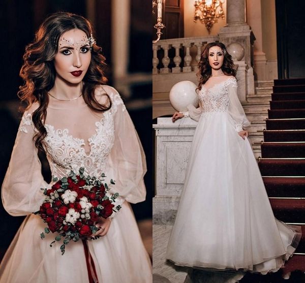 Illusion Wedding Dresses 2018 New Appliques Lace Top Pretty Bridal