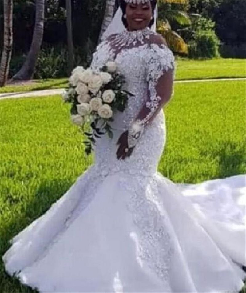 African Plus Size Mermaid Wedding Dresses 2019 High Neckline