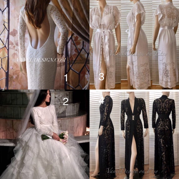 Wedding Dress Open Back Long Sleeves White Lace Mermaid Ivory Etsy