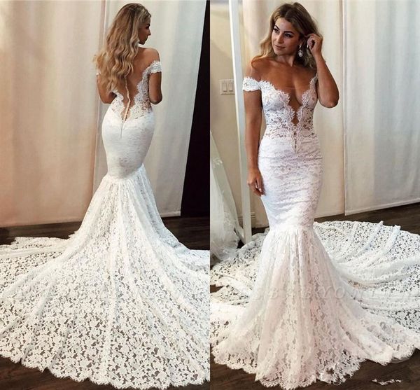 Full Lace Mermaid Wedding Dresses Elegant Off Shoulder Backless