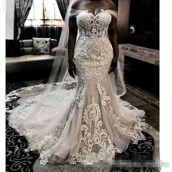 2018 Plus Size Wedding Dresses Off The Shoulder Appliques Illusion