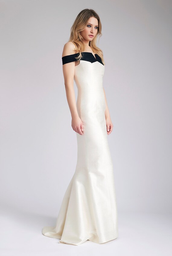 Ivory Silk Wedding Dress Fitted Evening Dress With Train Off Etsy