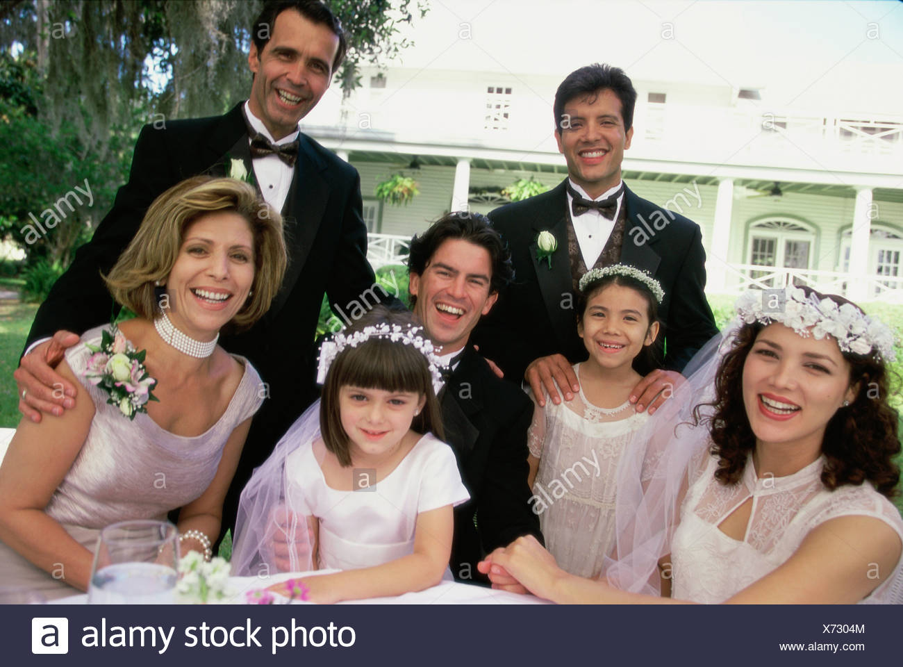 Portrait Of Wedding Guests With A Newlywed Couple Stock Photo