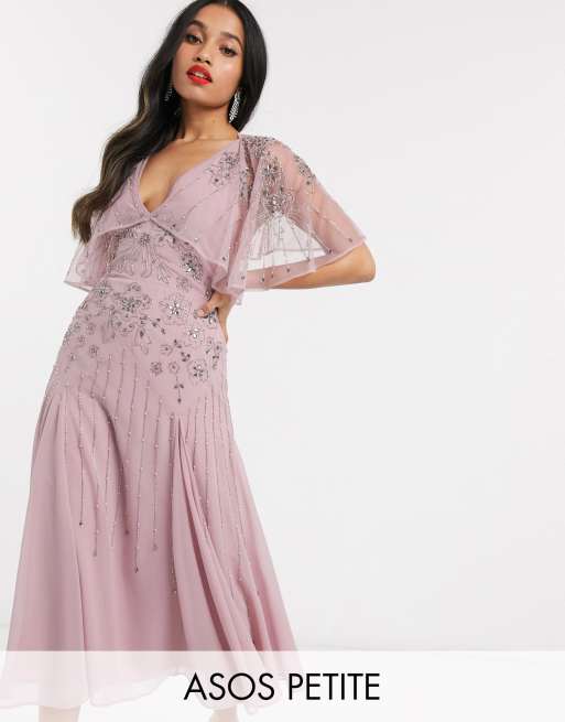 Asos Design Petite Floral Embellished Cape Midi Dress Asos