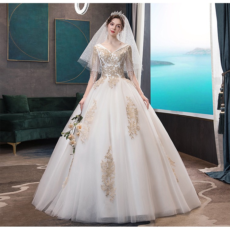 Glitter Gold Sequined Lace Ball Gown Wedding Dress 2584879 Weddbook