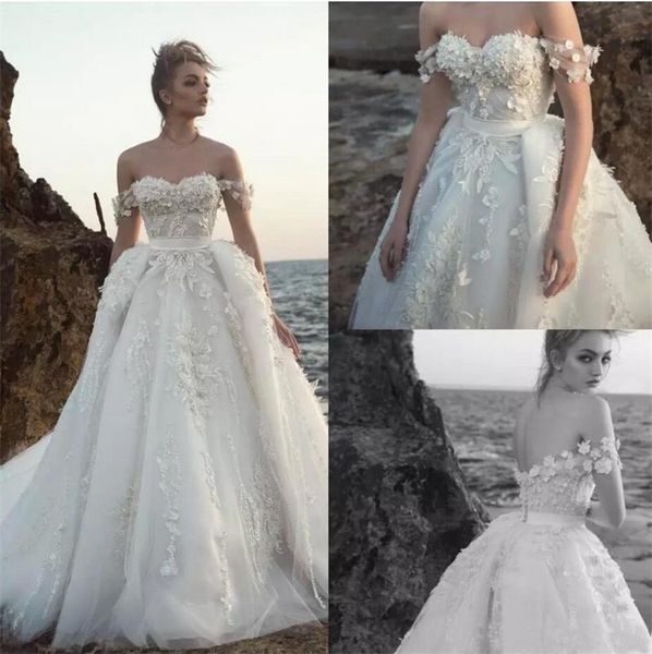 Discount Romantic Ivory Off Shoulders Lace Appliqued Wedding