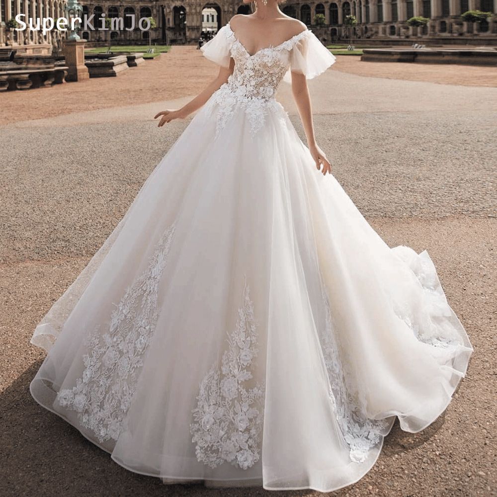 Discount Charming V Neck Off The Shoulder Wedding Dresses Bridal