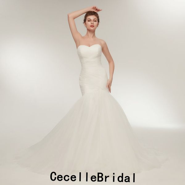 2019 New Mermaid Ruched Tulle Long Wedding Dress Strapless Corset