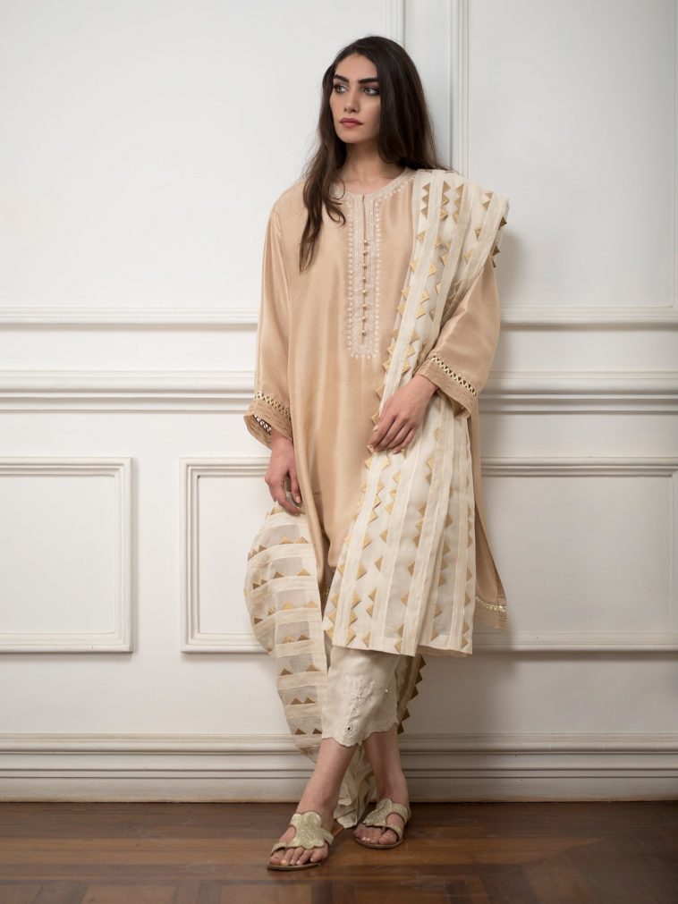Beautiful Cream Pakistani Semi Formal Dress By Misha Lakhani