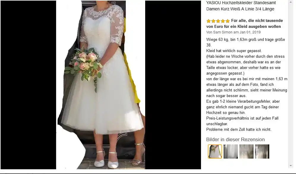 2019 Wedding Dress Registry Office Women Short White A Line 3 4