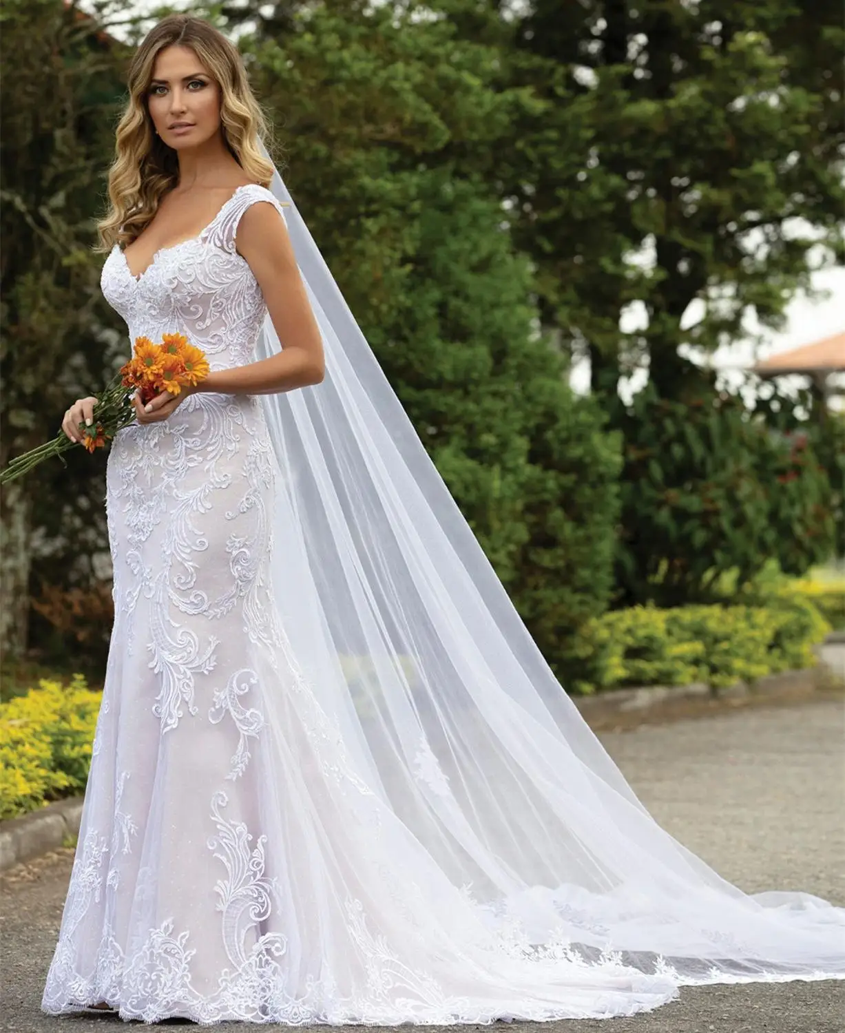 Verngo Mermaid Wedding Dress Boho Lace Appliques Bride Dresses