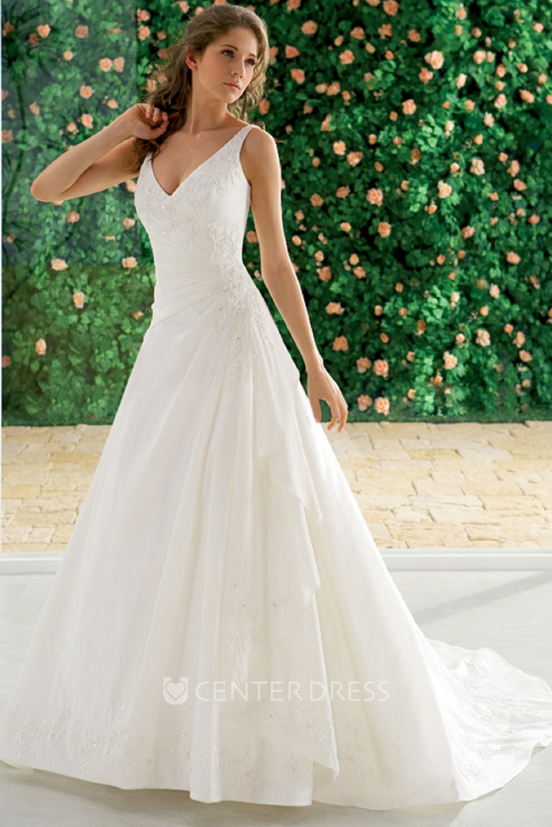 Sleeveless V Neck Beaded Bodice A Line Wedding Dress Wedding