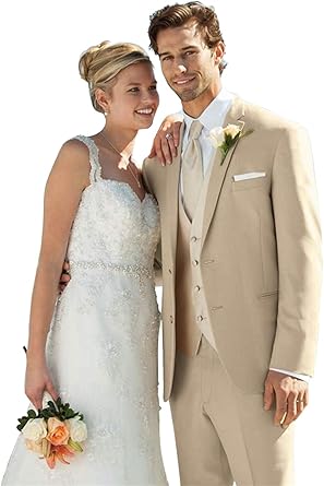 Slim Fit Beige Suit Brown Spectators Mens Outfits Wedding