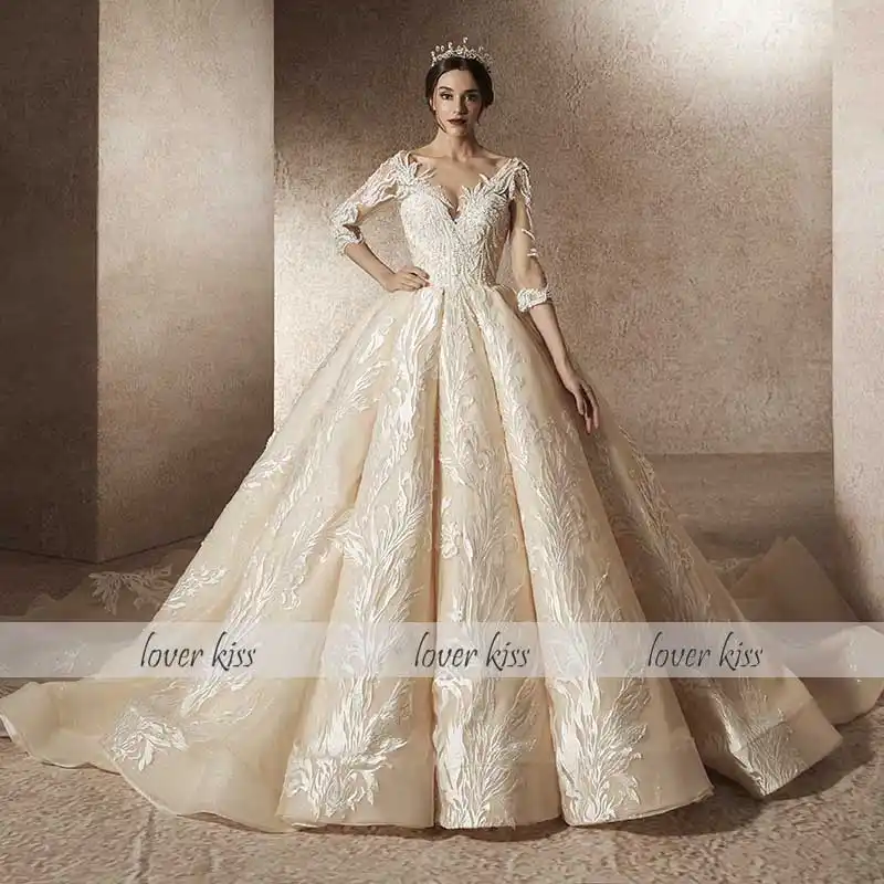 Lover Kiss Vestido De Noiva 2019 Sparkly Luxury 3 4 Sleeves