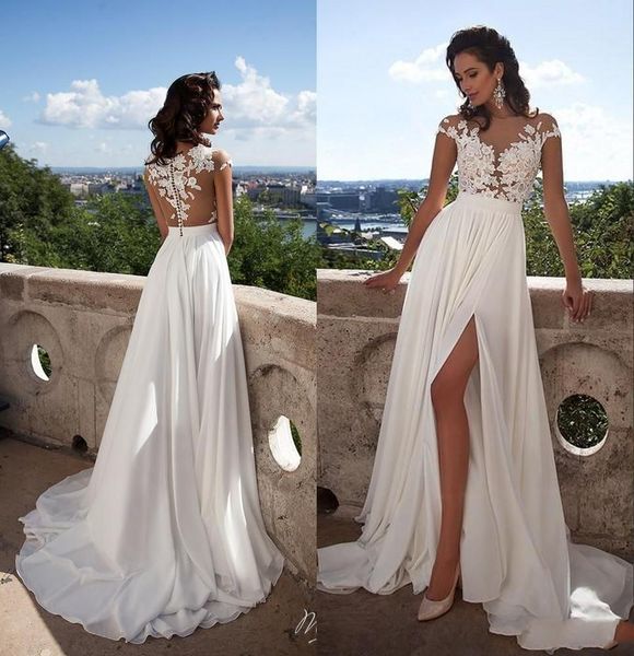 Romantic V Neck Wedding Dresses 2019 With Slit Chiffon Robe De