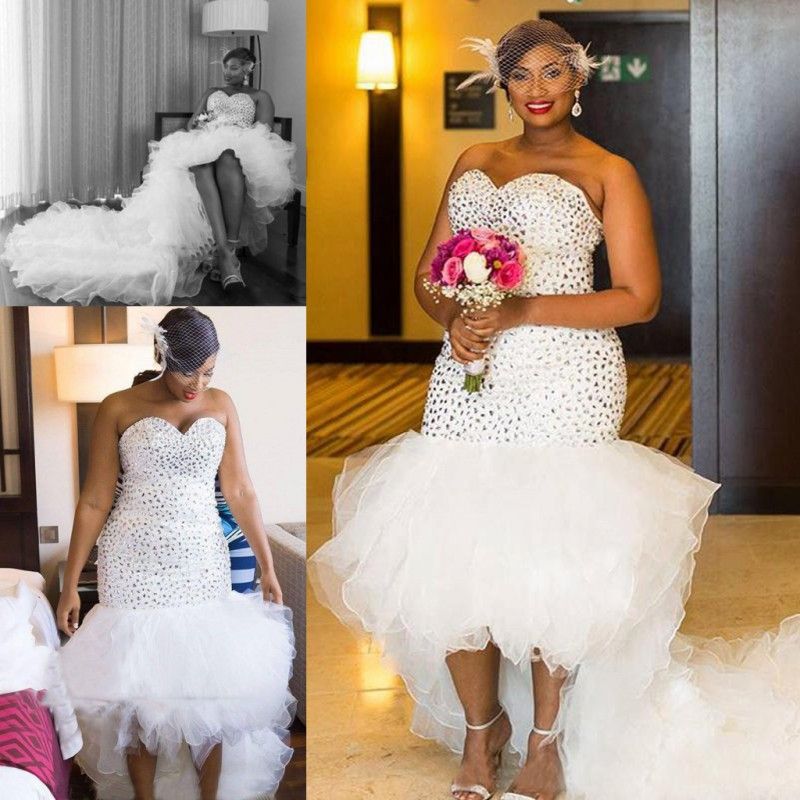 Crystals Beaded High Low Wedding Dresses African Plus Size