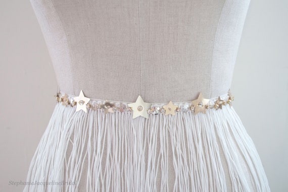 Fringed Handmade Gold Star Sequin Bridal Belt Hand Etsy