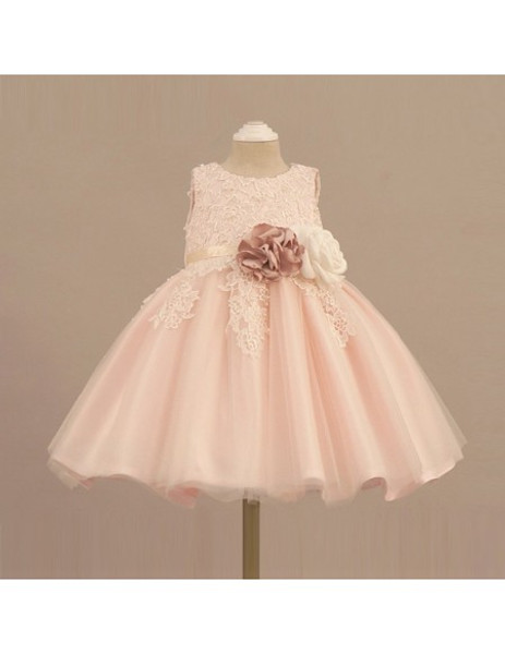 Lace Blush Pink Flower Girl Dress With Flowers