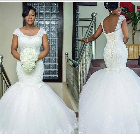 Luxury Arabic Beads Mermaid Wedding Dresses Vintage 2018 Backless