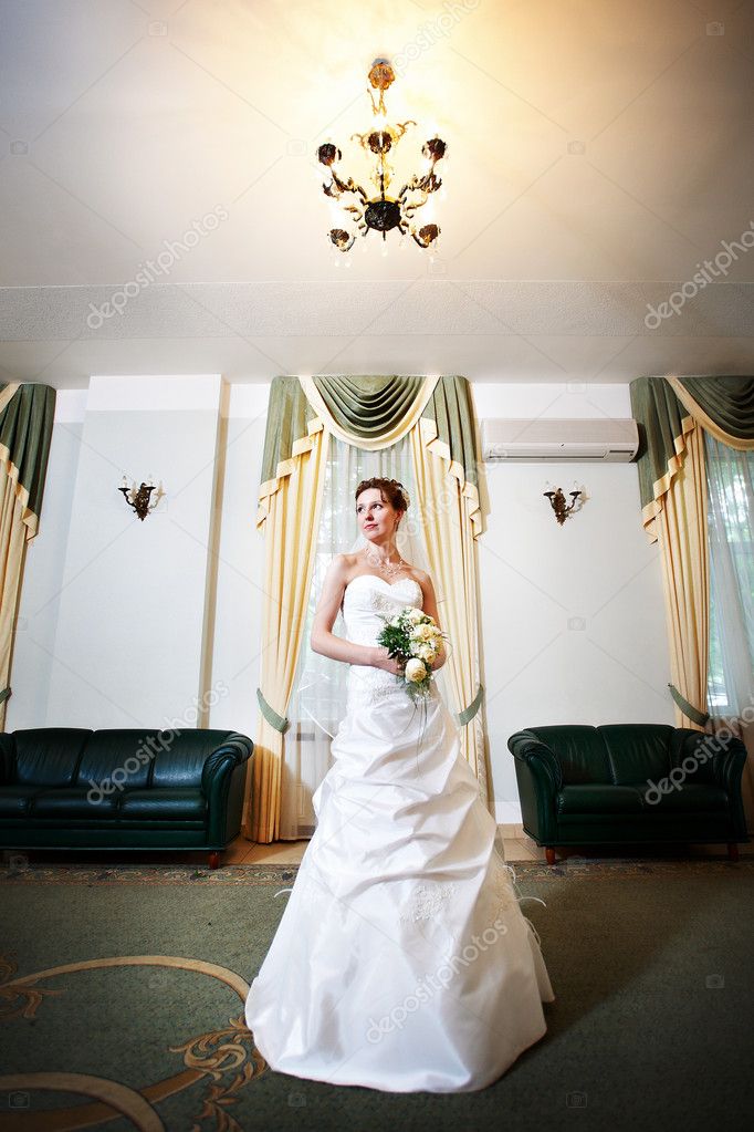 Bride In Wedding Dress In Interiors Of Palace Wedding Stock