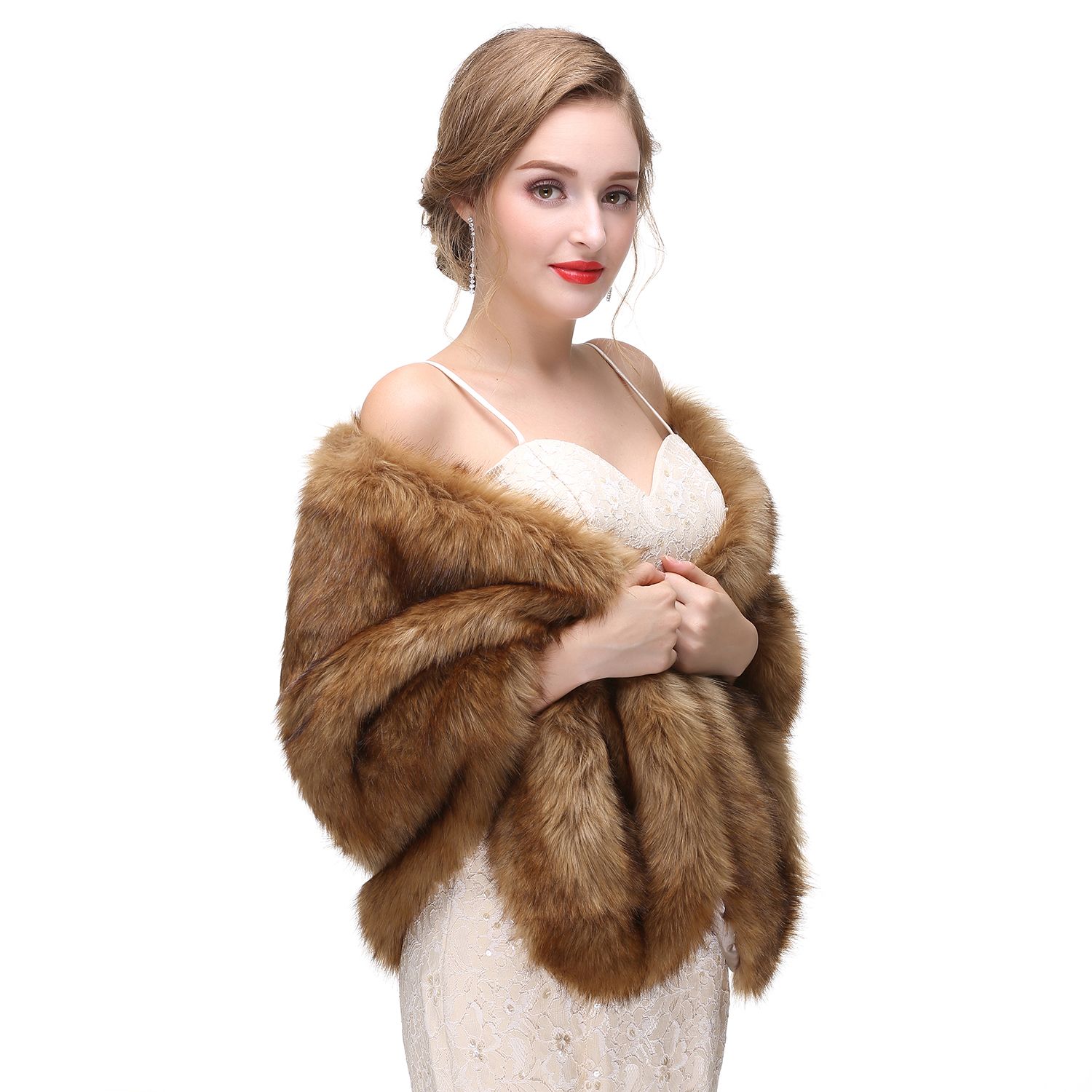Wedding dress faux fur wraps. Elfjoy luxury bridal faux fur cashmere wool shawl cloak cape wedding dress party coat for winter. Faux fur wraps and boleros imitation with elegance. Aukmla womens faux fur shawls and wraps wedding faux fox fur stole bridal fur scarf for bride and bridesmaids.