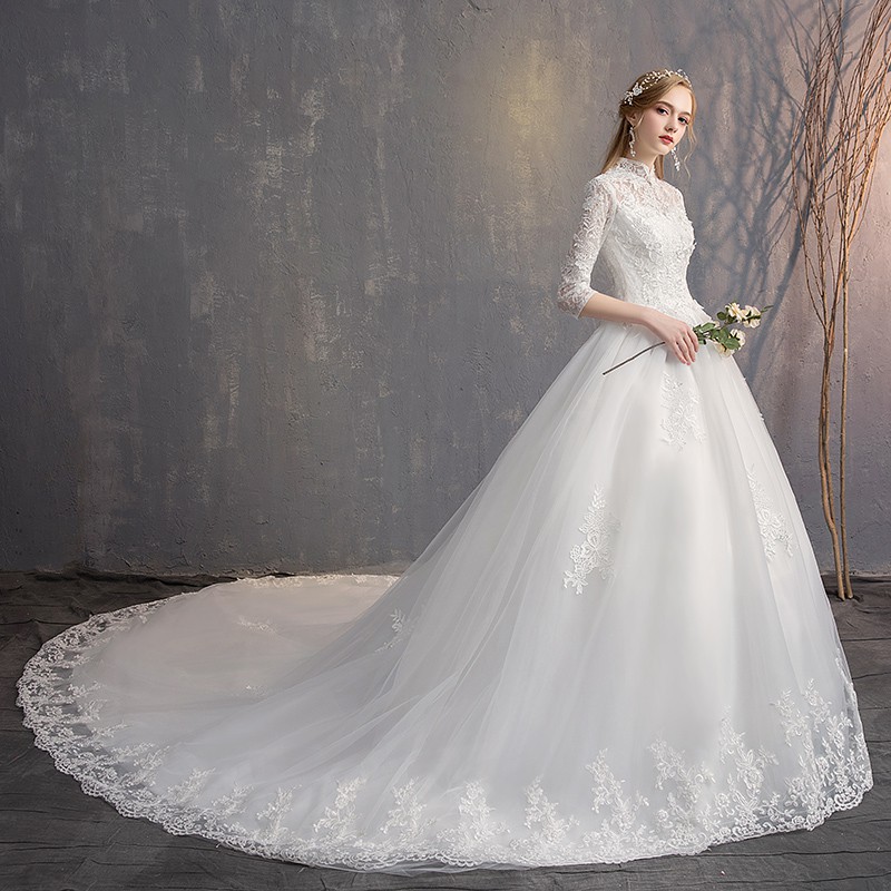 Wedding Dress 2019 French Vintage Hepburn Word Shoulder Long
