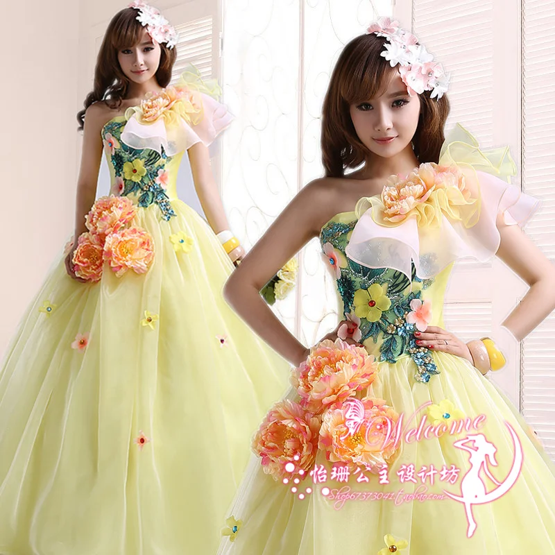 Quinceanera Dresses 2015 The Princess Sweet Yellow One Shoulder