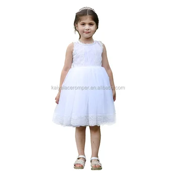 Pure White Summer Kids Wedding Clothes Girls Sleeveless Floral