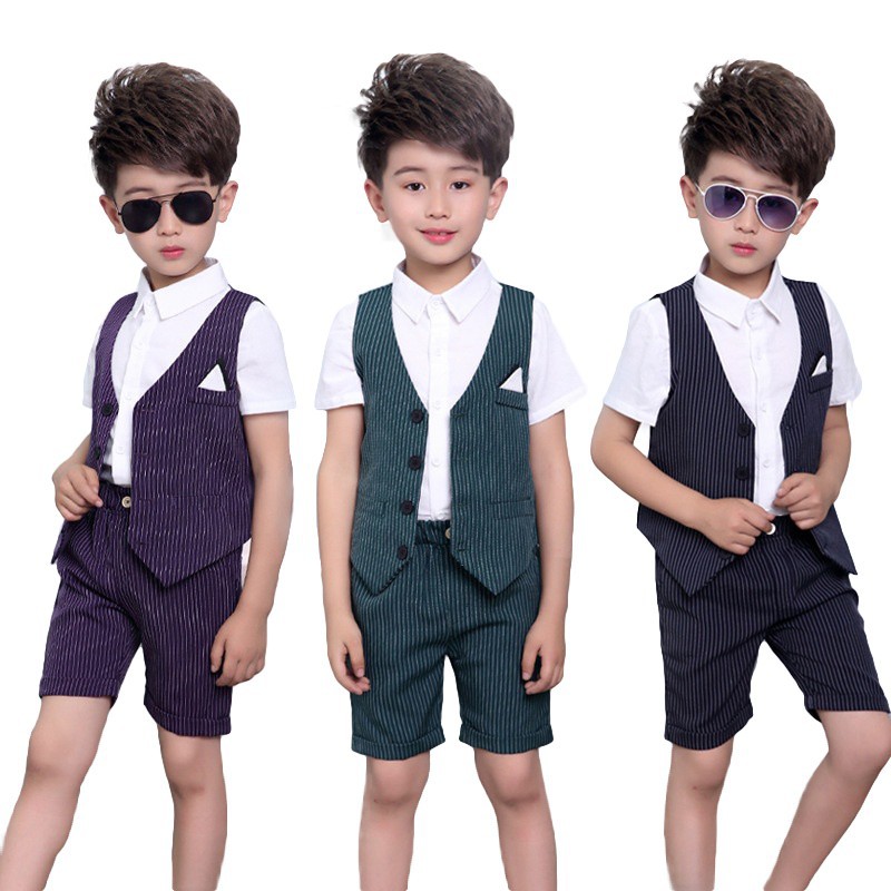 3pcs Boys Suits Short Suit Wedding Birthday Party Outfits Shopee