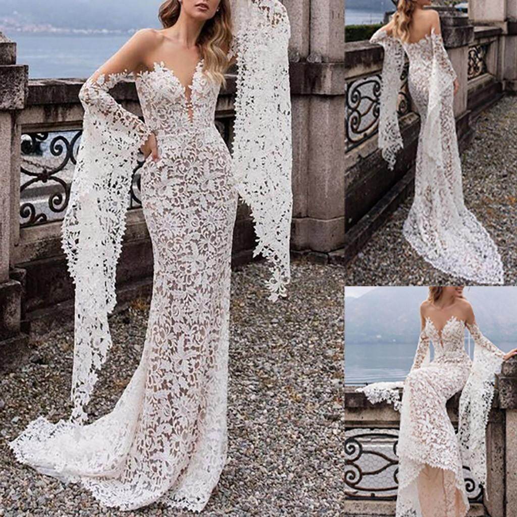 Lace Wedding Dress With Removable Off The Shoulder Long Sleeves