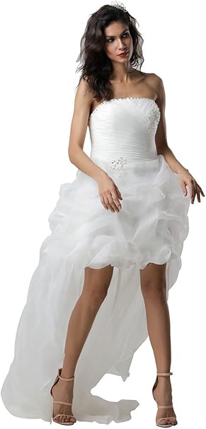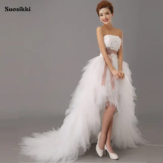 Short Front Long Back Elegant Strapless Beach Wedding Dresses
