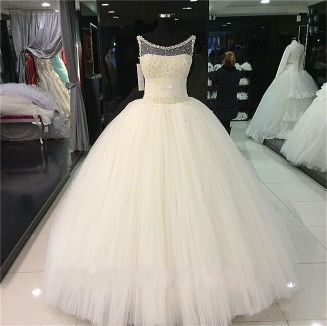 Bling Beaded Ball Gown Wedding Dresses Plus Size Pearls Crystal
