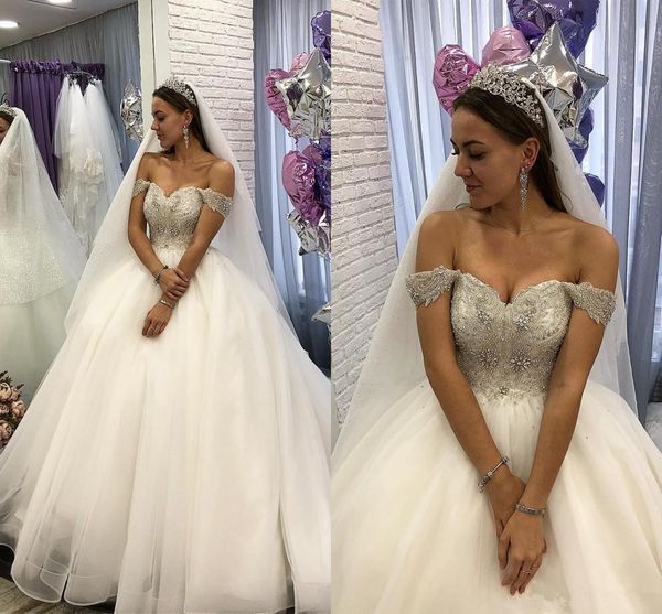 New Hot Bling Arabic Ball Gown Wedding Dresses Off Shoulder