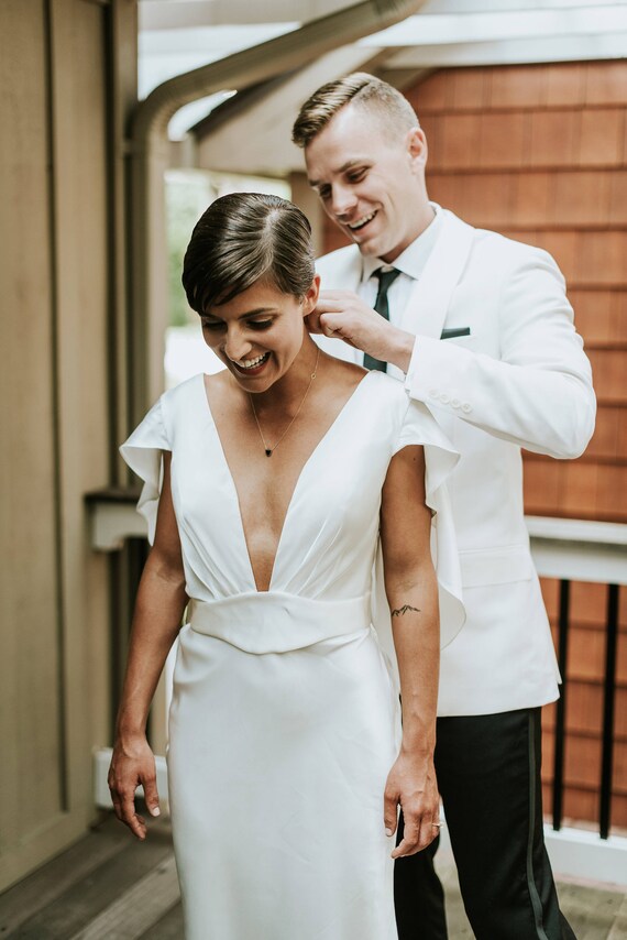 Plunging Goddess Boho Bridal Gown Bianca Bohemian Etsy