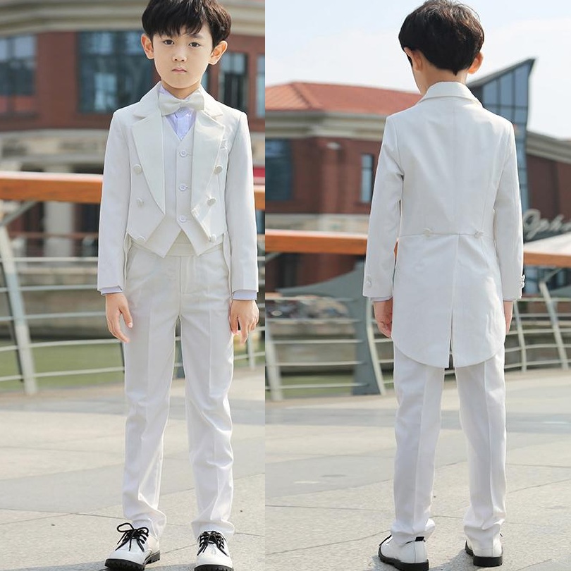 Full White Pure Design Boys Tailcoats Kids Suits Piano Performance