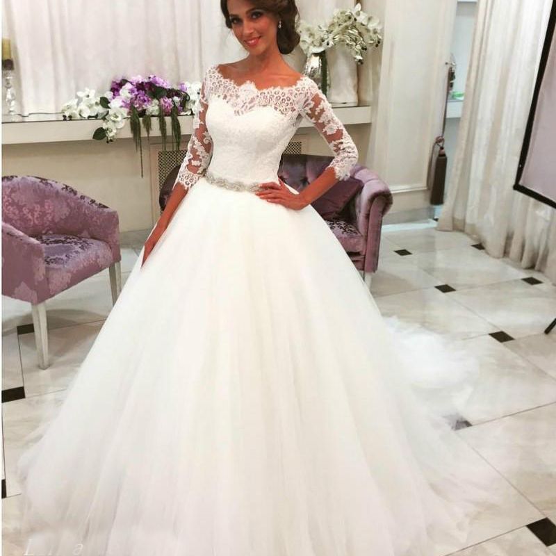 Romantic White Wedding Dresses Ball Gown Tulle Lace Long Dream