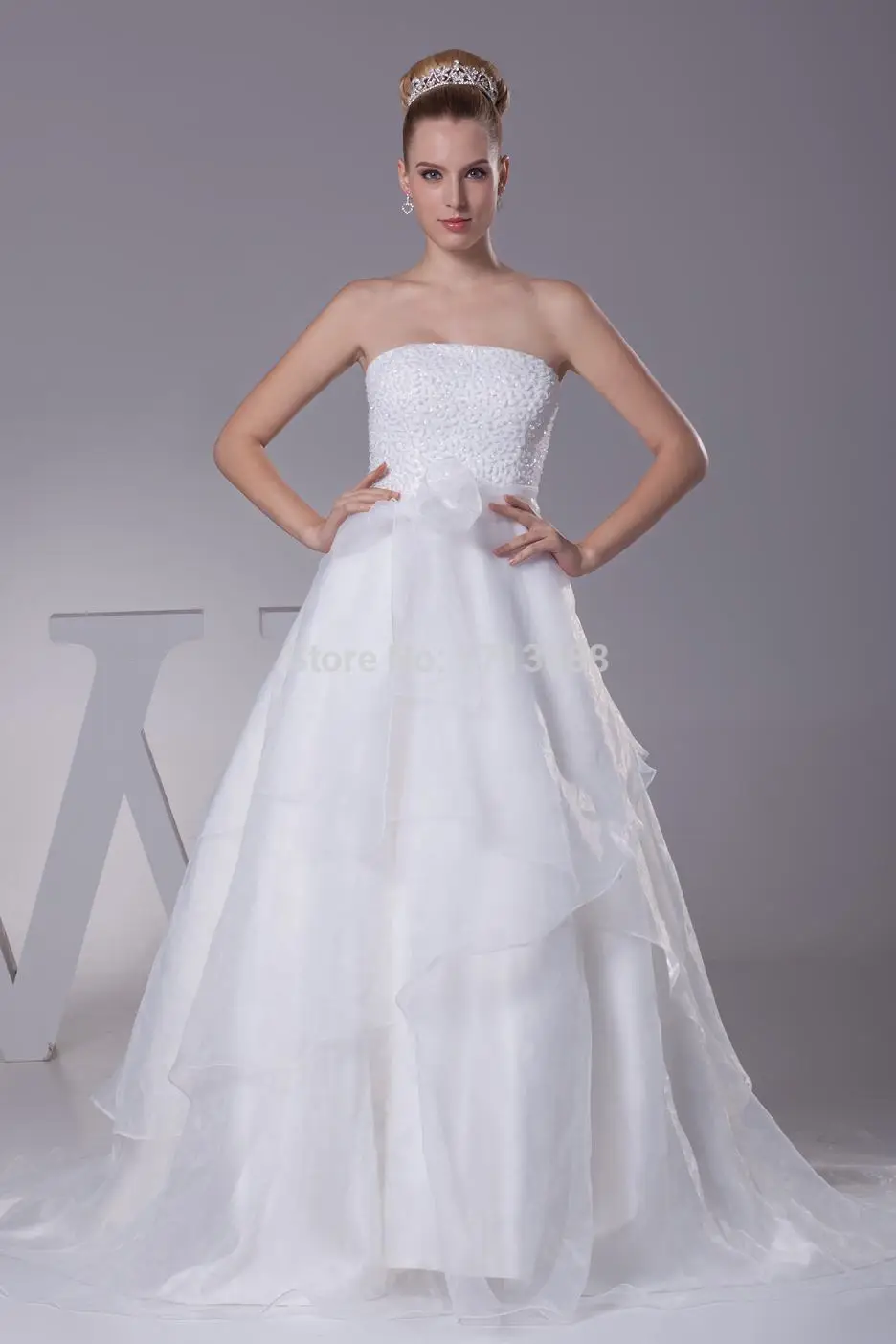 Civil Wedding Dress With Floor Length Strapless Beaded Off The