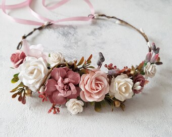Orange Flower Crown Wedding Party Headpieces Ribbon Headband Kids