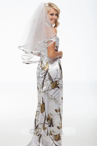 Halter V Neck Sexy Slit Realtree Snow White Camo Wedding Dress