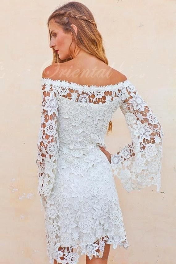 Bell Sleeves Crochet Lace Boho Hippie Wedding Dress Off Shoulder