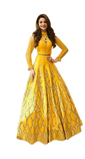 Buy Treadindia Yellow Color Semistich Embroidery Work Lehenga
