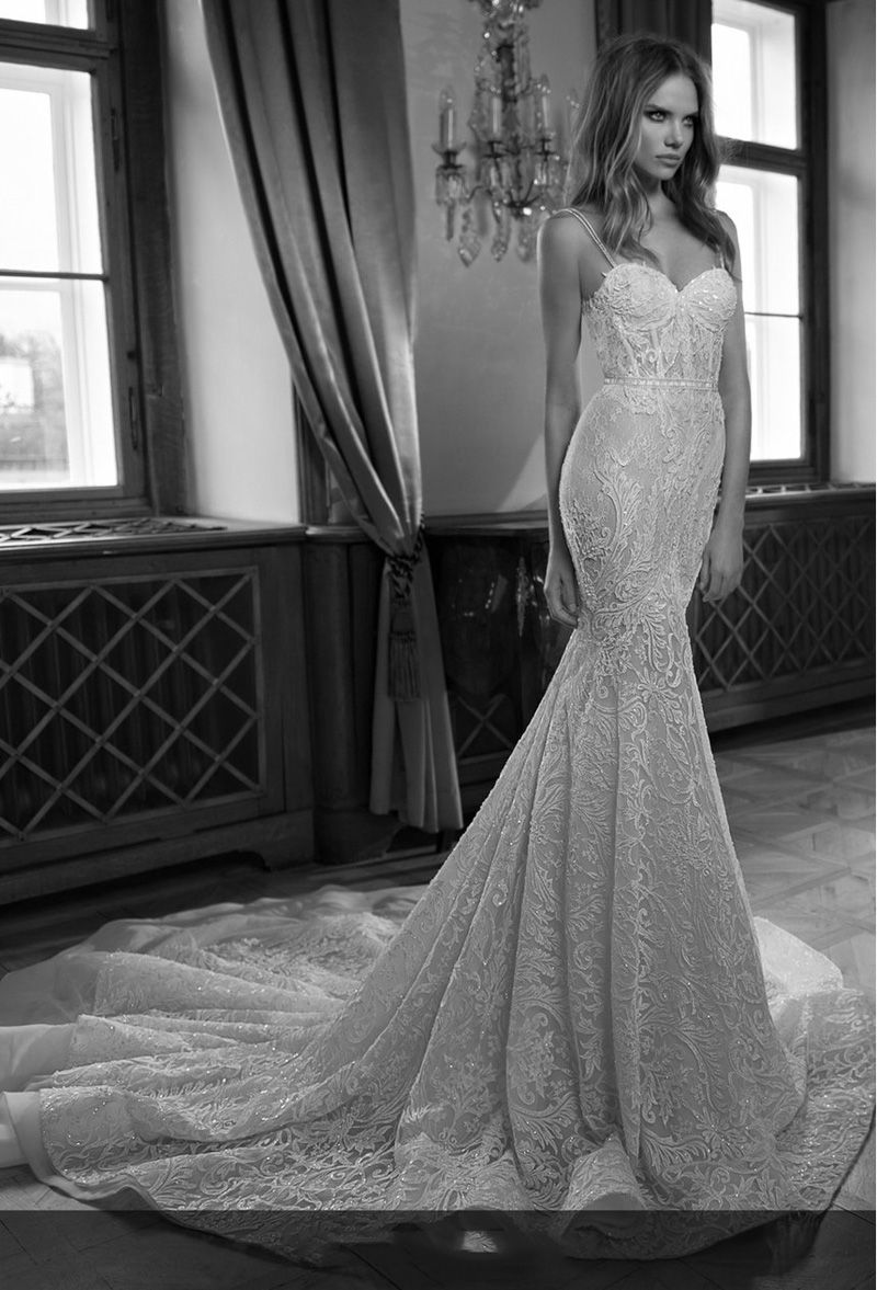 Fitted Mermaid Sweetheart Corset Back Lace Wedding Dress With Straps