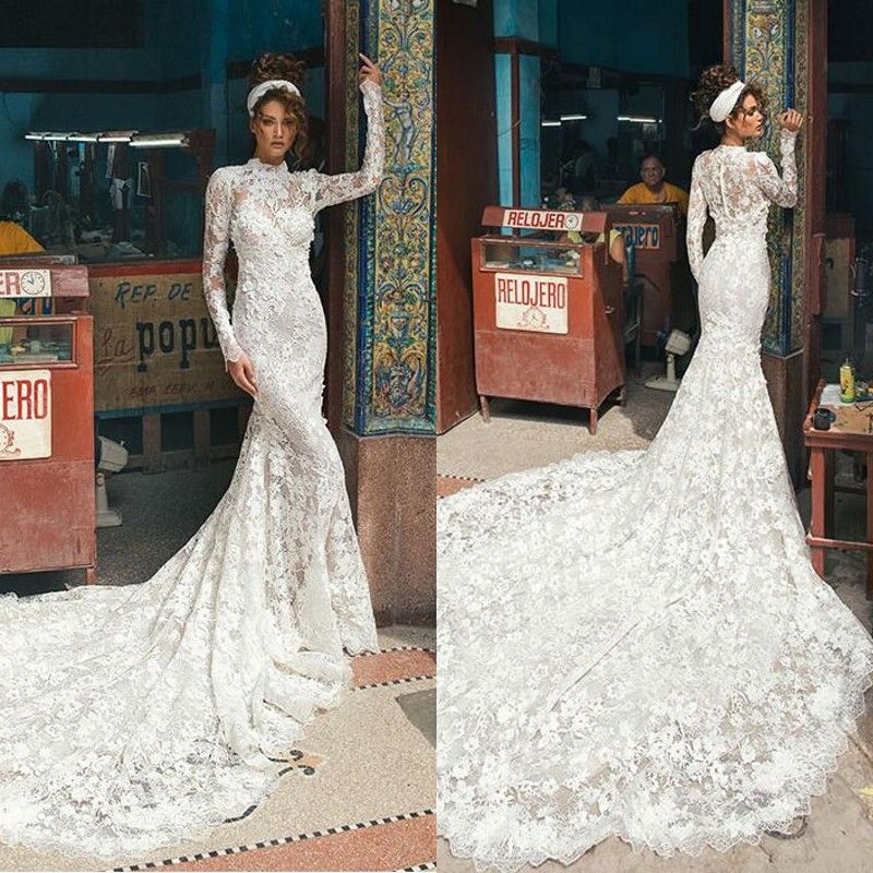 2018 Vintage Berta Full Lace High Collar Wedding Dresses With Long