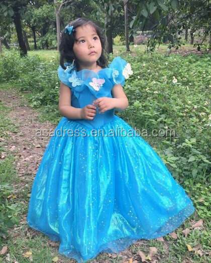 Real Sample Royal Blue Cinderella Baby Girls Wedding Dress Flower