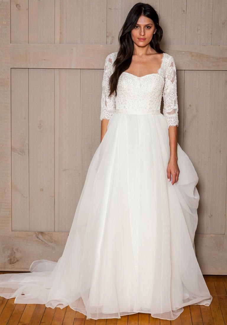 2016 Modest Wedding Dresses Lace Bodice Tulle Skirt 3 4 Sleeves