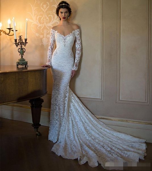 Long Sleeve Off Shoulder Lace Mermaid Wedding Dress With